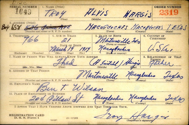 roy Hargis was born on March 19, 1919, in Martinsville, Nacogdoches County, Texas, USA.. The son of Thaddeus Hargis and Annie Kendrick. Troy grew up in Nacogdoches County and graduated from Nacogdoches High School. He received a bachelor's degree from Stephen F. Austin State University and his master's degree in business from the University of Pittsburgh. Troy entered the Army Air Corp. in 1940, he trained at Hemet Field and Moffett Field in California, He served in the Pacific. He was awarded the Asian Pacific Operations medal. of Japan as a pilot. He graduated from the Aviation Program in 1941 in Hemel, Calif. He also went to language school at Yale University to learn Japanese in order to work as a liaison for the U.S. Air Force through the Military Assistance Group in Tokyo. After the war, he served in Germany. When he came back stateside, he worked for two years at the NASA Manned Space Center in Houston as a liaison officer for the Air Force working with the astronauts at that time. After 27 years of military service, Troy retired from the Air Force in 1968 as a command pilot and received the Legion of Merit award for his service to the United States. Troy went on to become a teacher of business at SFA for 20 years. While teaching, he ran his ranching operation near Black Jack. He retired from SFA in 1992, but continued ranching until his health declined. Ranching was his life. He was a member of Calvary Baptist Church in Nacogdoches. Col. Hargis passed away on Sunday, Jan. 20, 2013, in San Antonio, Baxar County, Texas. He is buried at Black Jack Cemetery in Black Jack, Nacogdoches County, Texas.